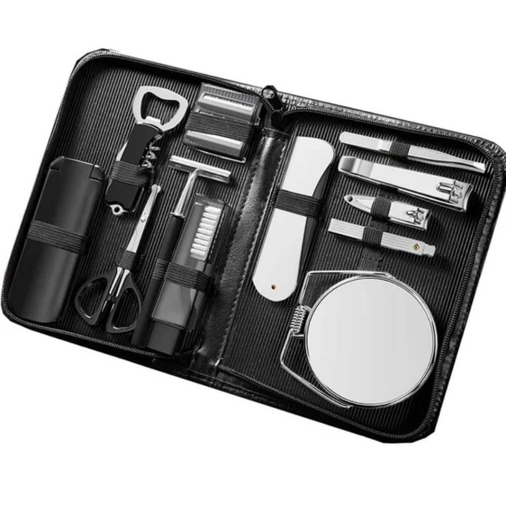 Kit Para Viagem Masculino Com 12 Peças no Estojo de Couro DH-218