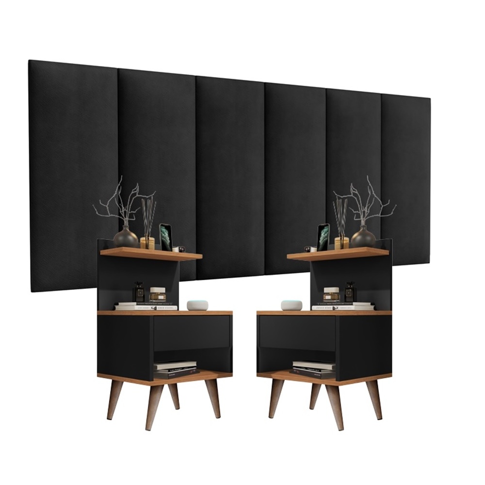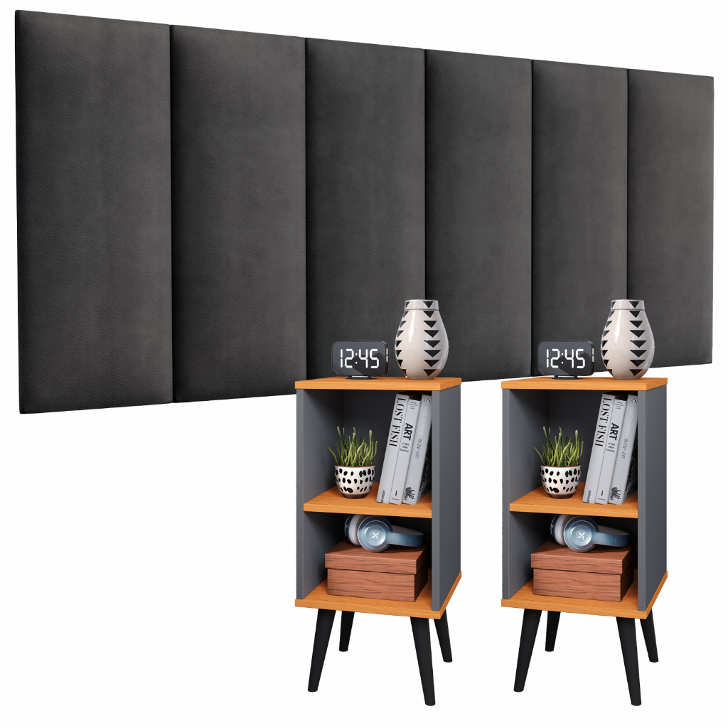 Conjunto Mesa de Cabeceira Alice Quarto Casal e Cabeceira de Cama 1,40 cm