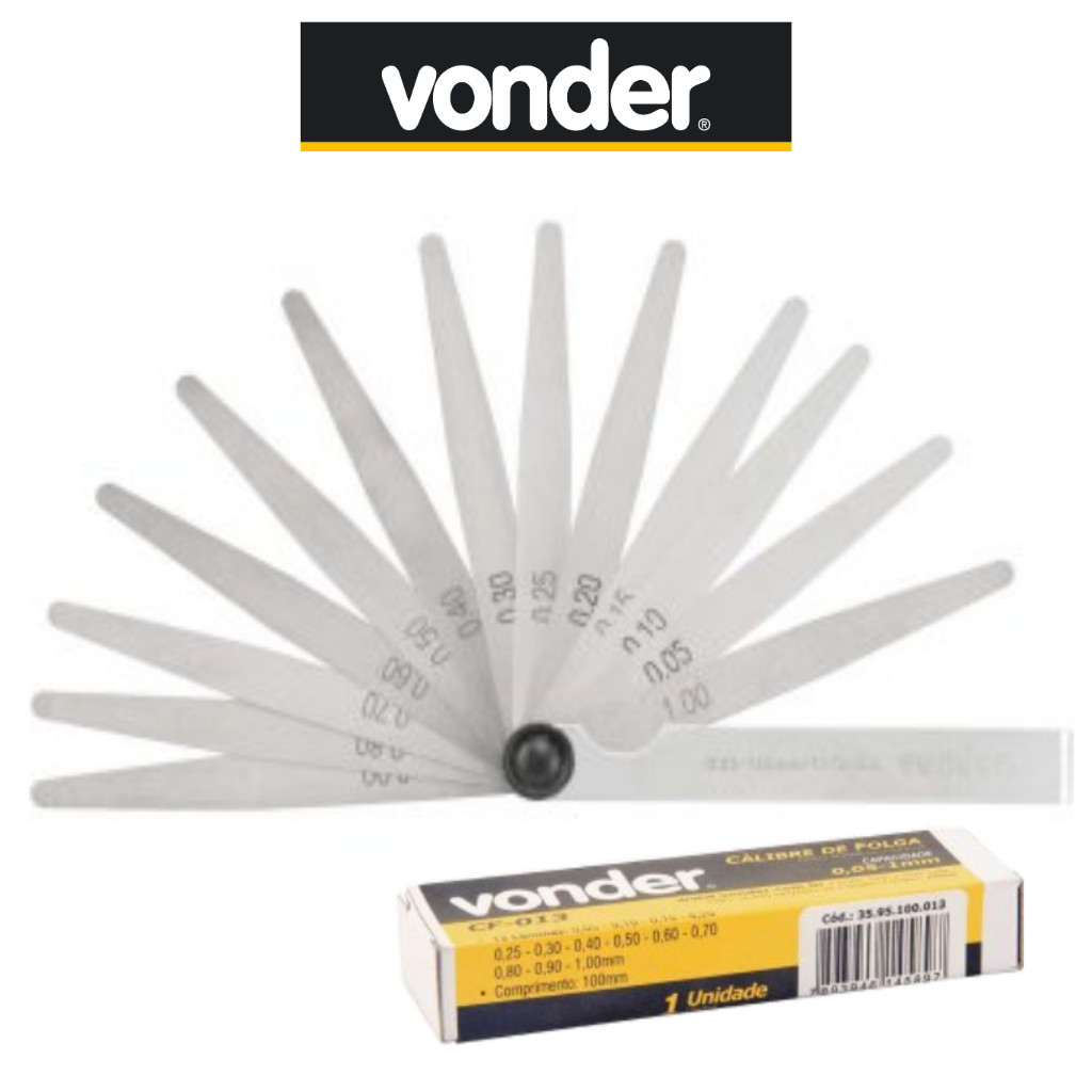 Calibre de Folga 0,05mm - 1,00mm com 13 Lâminas - VONDER