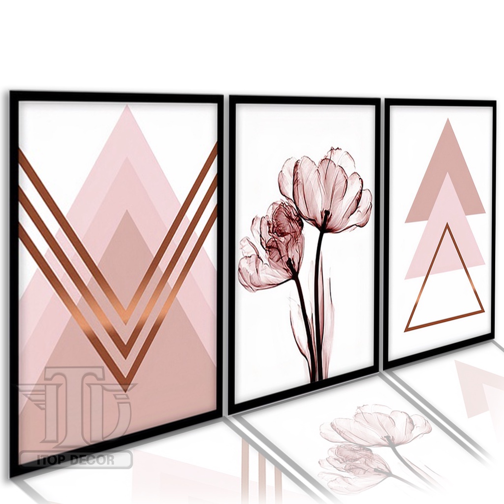 Kit 3 Peças Quadros de Parede Feminino Decoração Mdf Geométricos Colorido Abstrato Moderno Moldura Luxo Escritório Sala Quarto