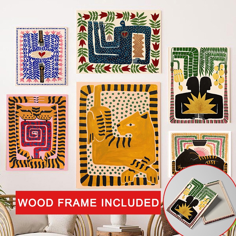 (with Frame) Ancient Egito Cartaz Boho Abstrato Colorido Com Moldura Leopardo Tigre Figura Pintura Em Tela De Arte De Parede Para Quadros De Decoração De Salas