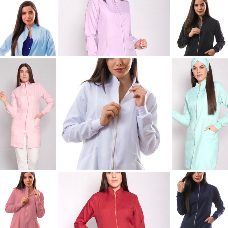 Jaleco Feminino Acinturado Oxford Com Zíper Gola Padre Várias Cores