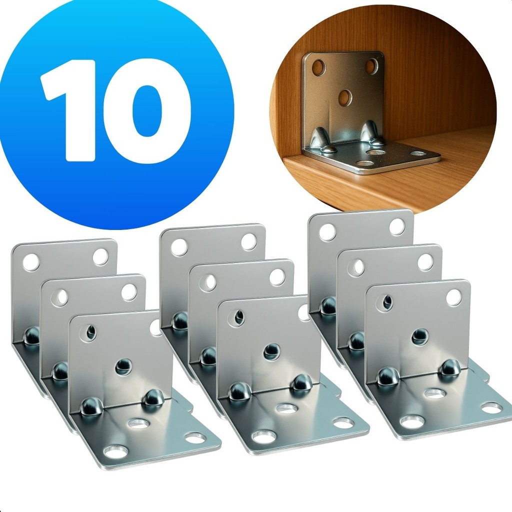 Kit 10 unidades Cantoneira 6 furos Reforçada Para Moveis Paredes E armario De 2 Polegada