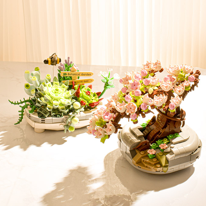 389PCS 1660 Bloco De Construção De Flor De Cerejeira & Suculenta Bonsai Simulação Planta Verde Decoração Montagem Quebra-Cabeça Brinquedo De Presente