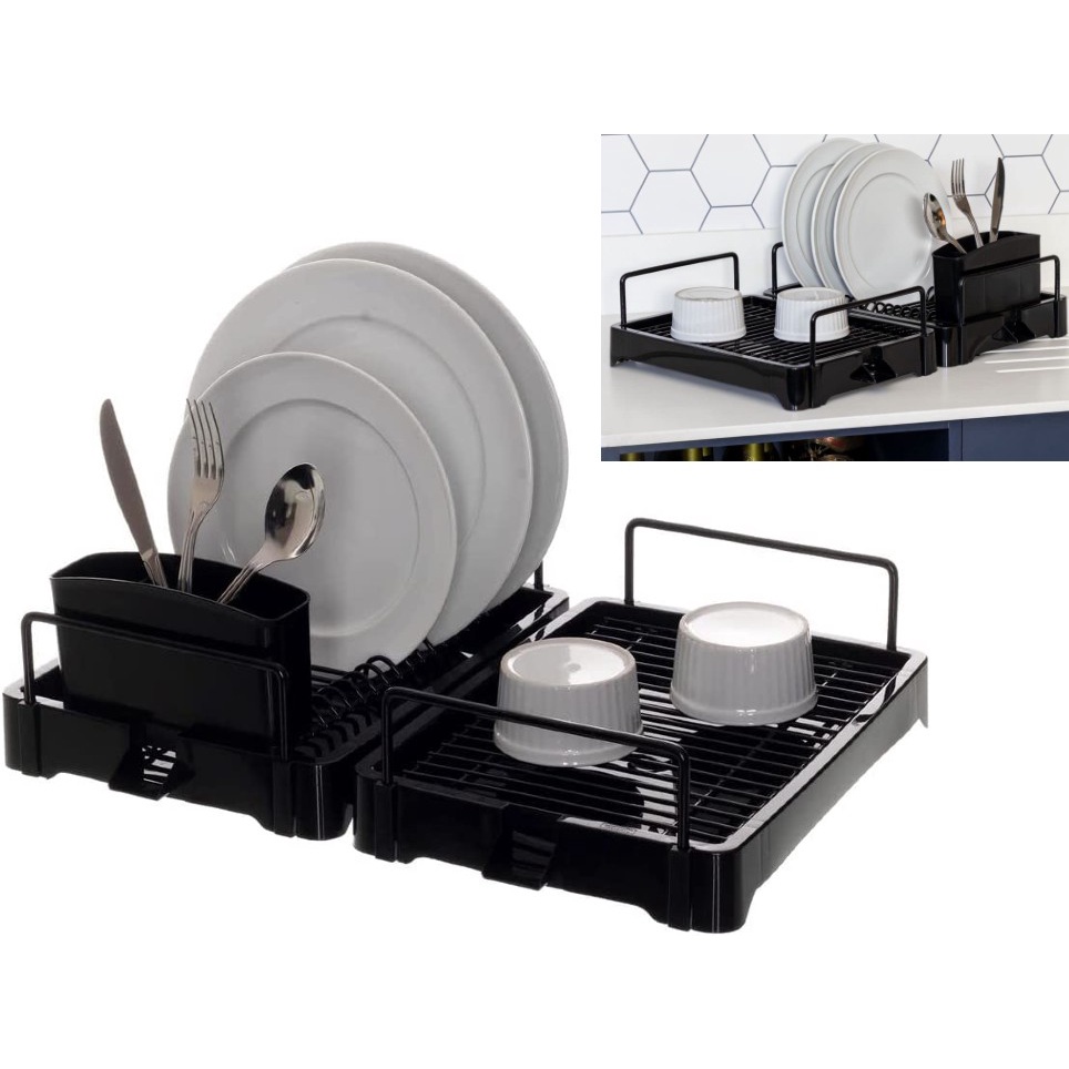 Escorredor de Louça Para Pia Cozinha Pratos Talheres Bandeja Preto