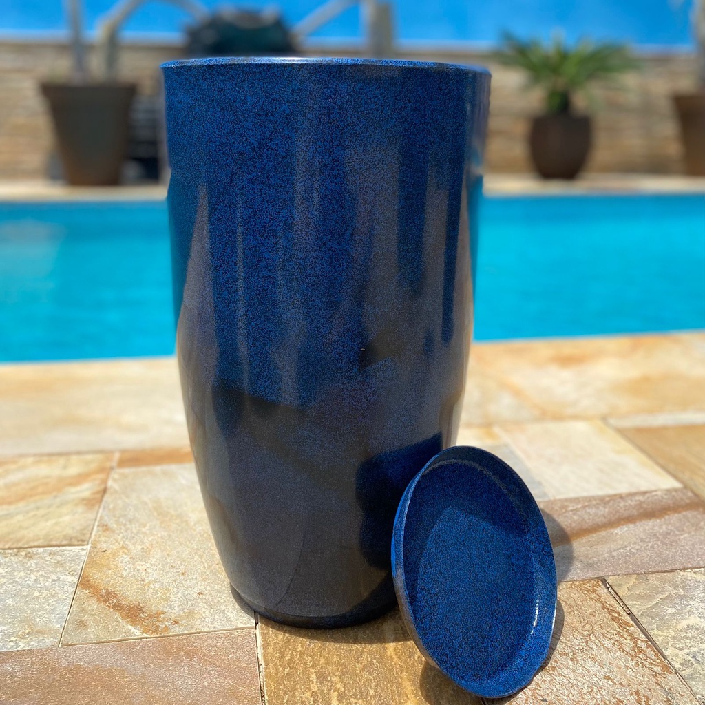 Vaso para Planta Coluna Lisa Marmorizada Moderna N2 com Prato