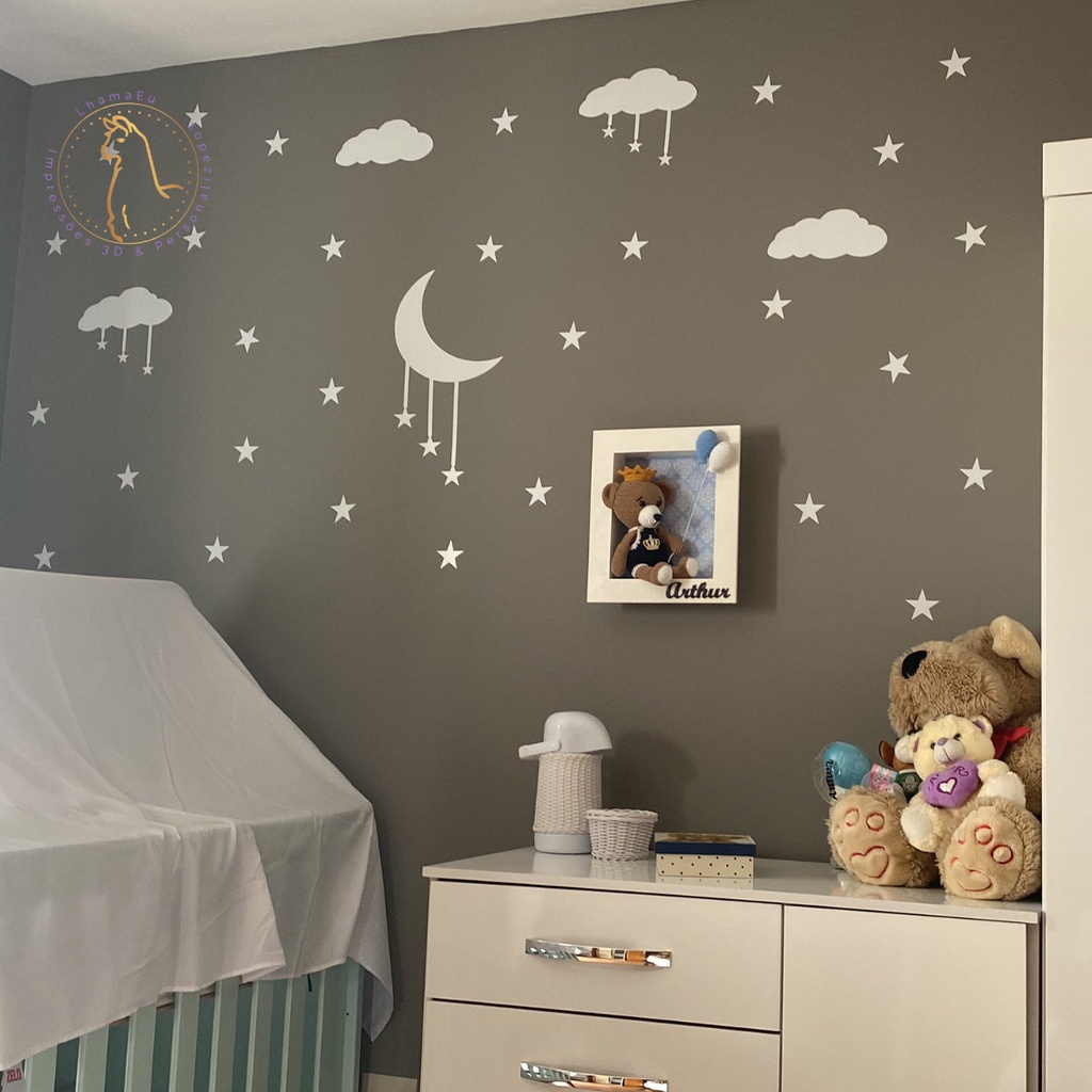Kit Nuvens Estrelas Lua Adesivo de Parede Quarto Bebe