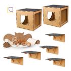 Kit Gato Playground de Parede 8 Peças Gatil Interno mdf Natural escalador para Gatos com Poste arranhador