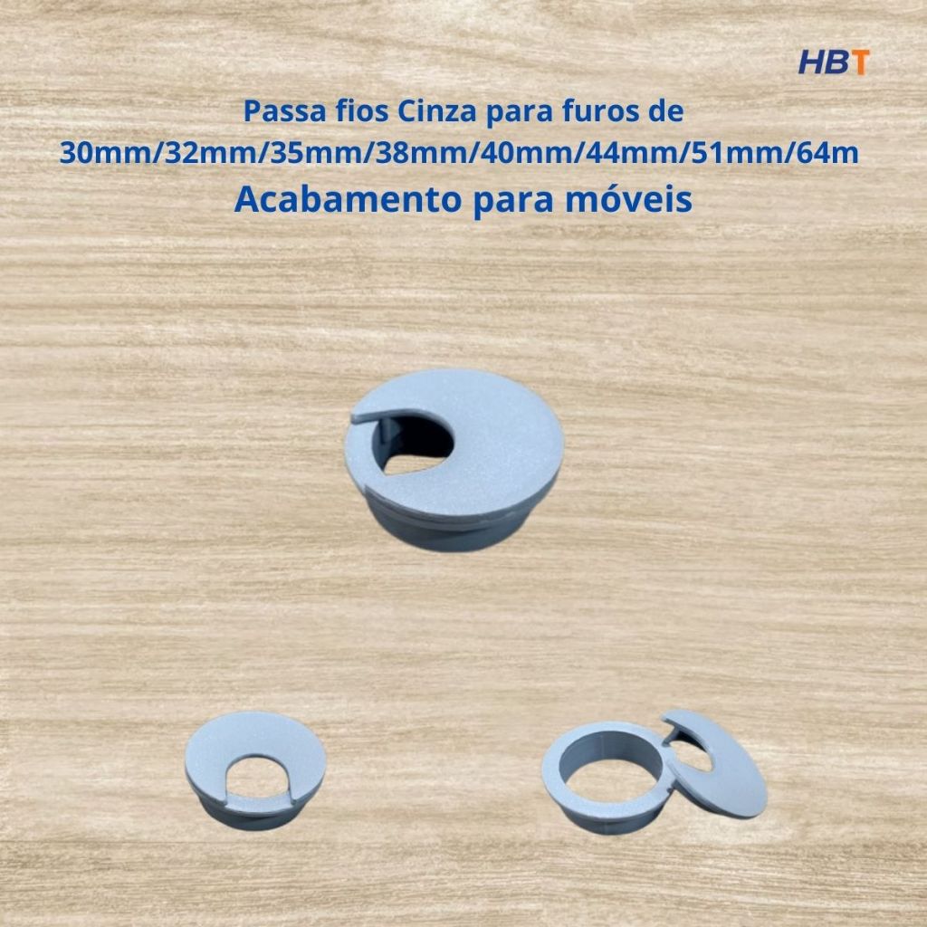 Passa fios Cinza para furos de 30mm/35mm/32mm/38mm/44mm/51mm/64m /Acabamento para móveis