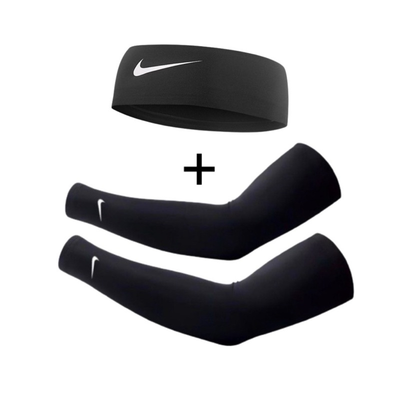 Par de Manguito Proteção Solar UV + Tiara Esportiva Faixa Cabeça Headband