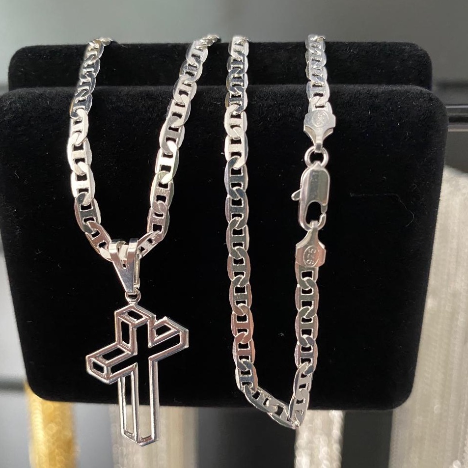 Cordão masculino de prata 925 Piastrine 60cm com cruz 2,8cm