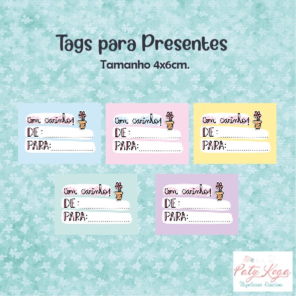 Tag / Cartão Com Carinho - De: Para: para ser usado em presente, lembrancinha