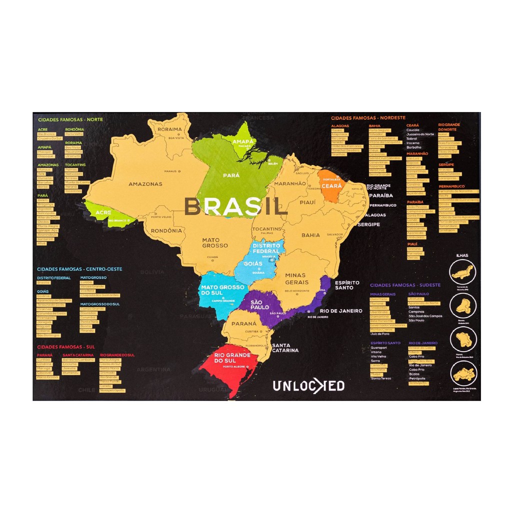 Mapa do Brasil de Raspar | Unlocked | 60x42 CM | Sem moldura | Mapa de Viagens | Raspadinha