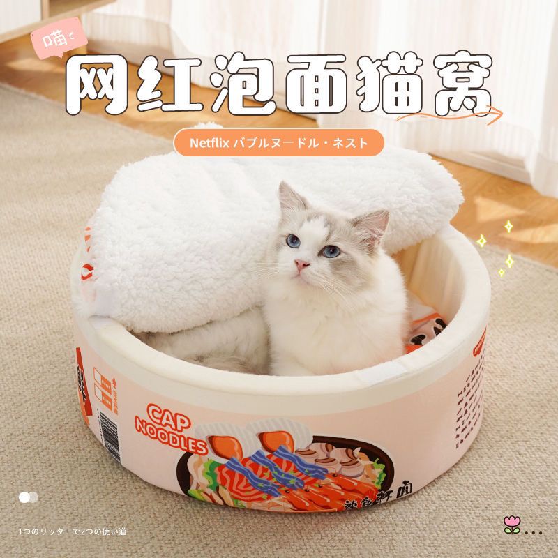 Casa De Macarrão Instantânea Em Forma Universal Fechada Ramen House Cat Nest Warm Pet Bed Kennel