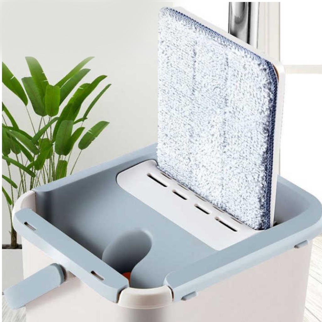 Mop Rodo Com Balde Esfregão Flat Lava E Seca Com 2 Refil Extra De Microfibra Multiuso limpeza