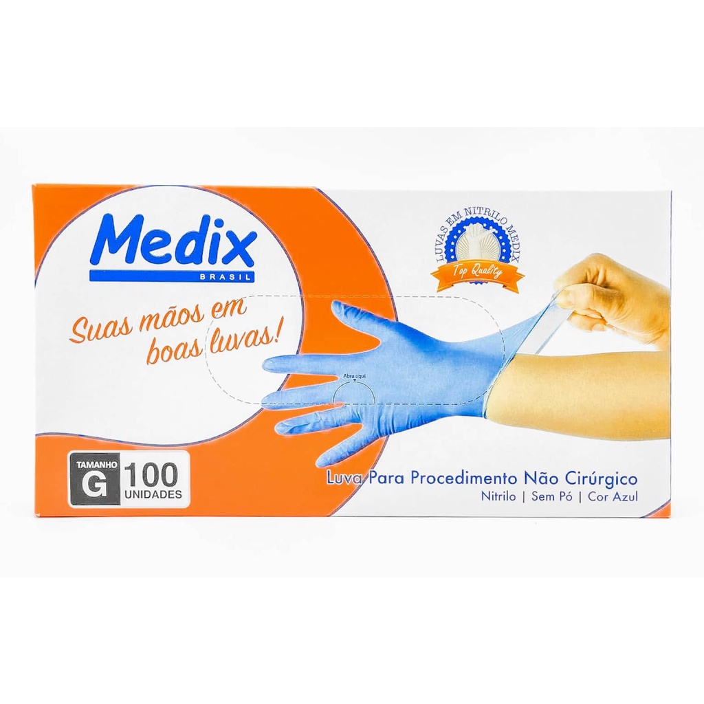 Luva Descartável Nitrílica Azul Sem Pó Cx C/100 Unidades Medix