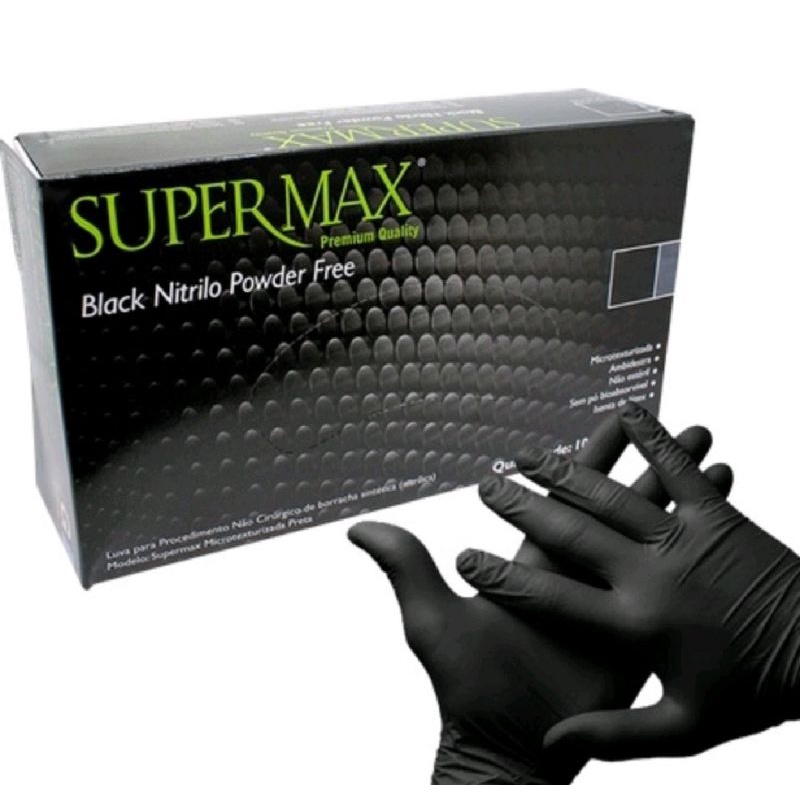 Luva Descartável Nitrílica Preta Black Sem Pó C/100 Supermax