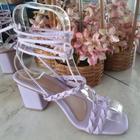 Sandália Feminina Amarração Salto Alto Grosso Corrente De Amarrar Na Perna Confortável Saltinho Blogueira