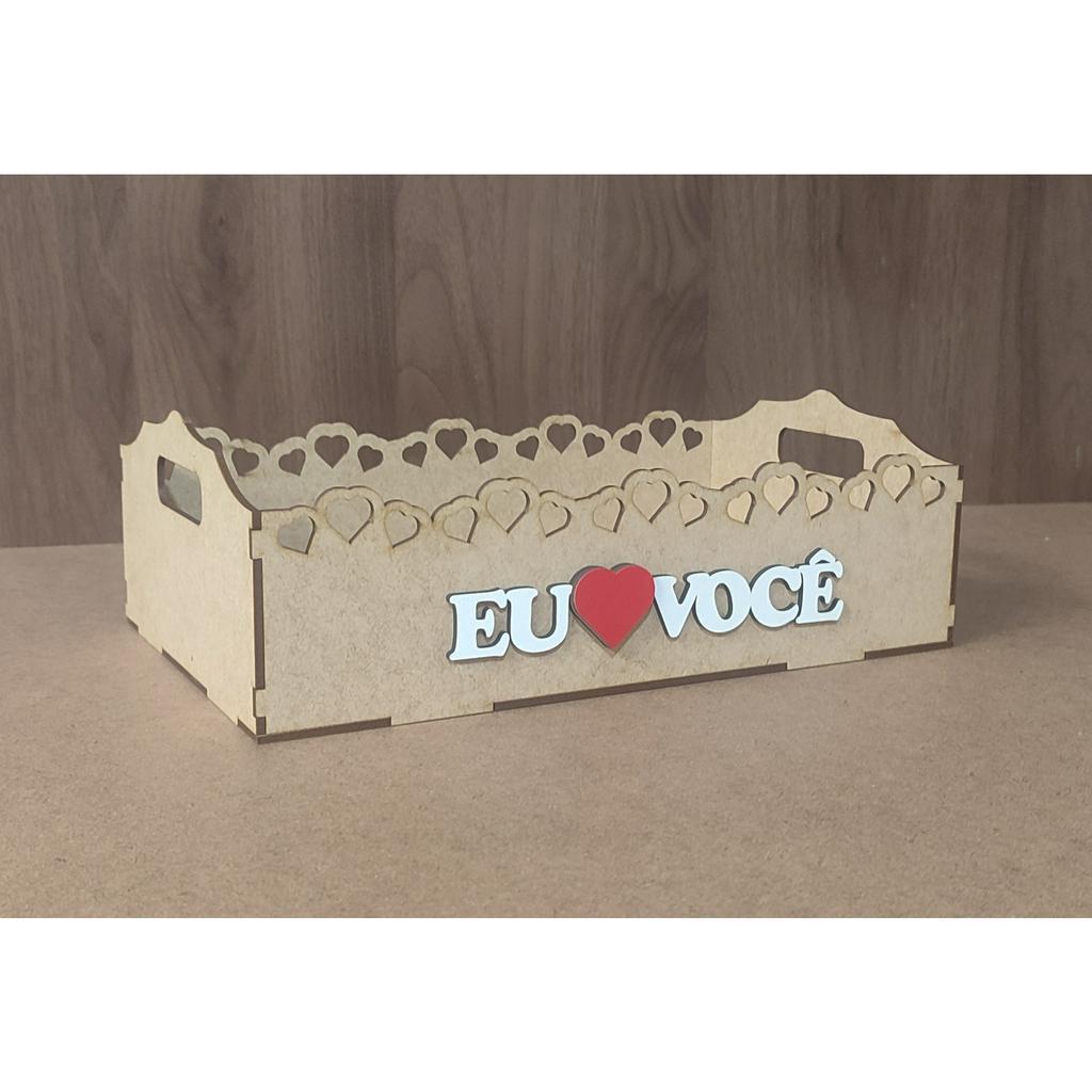 Kit 5 Bandeja Retangular Te Amo Cesta - MDF 3mm Cru - Dia dos Namorados