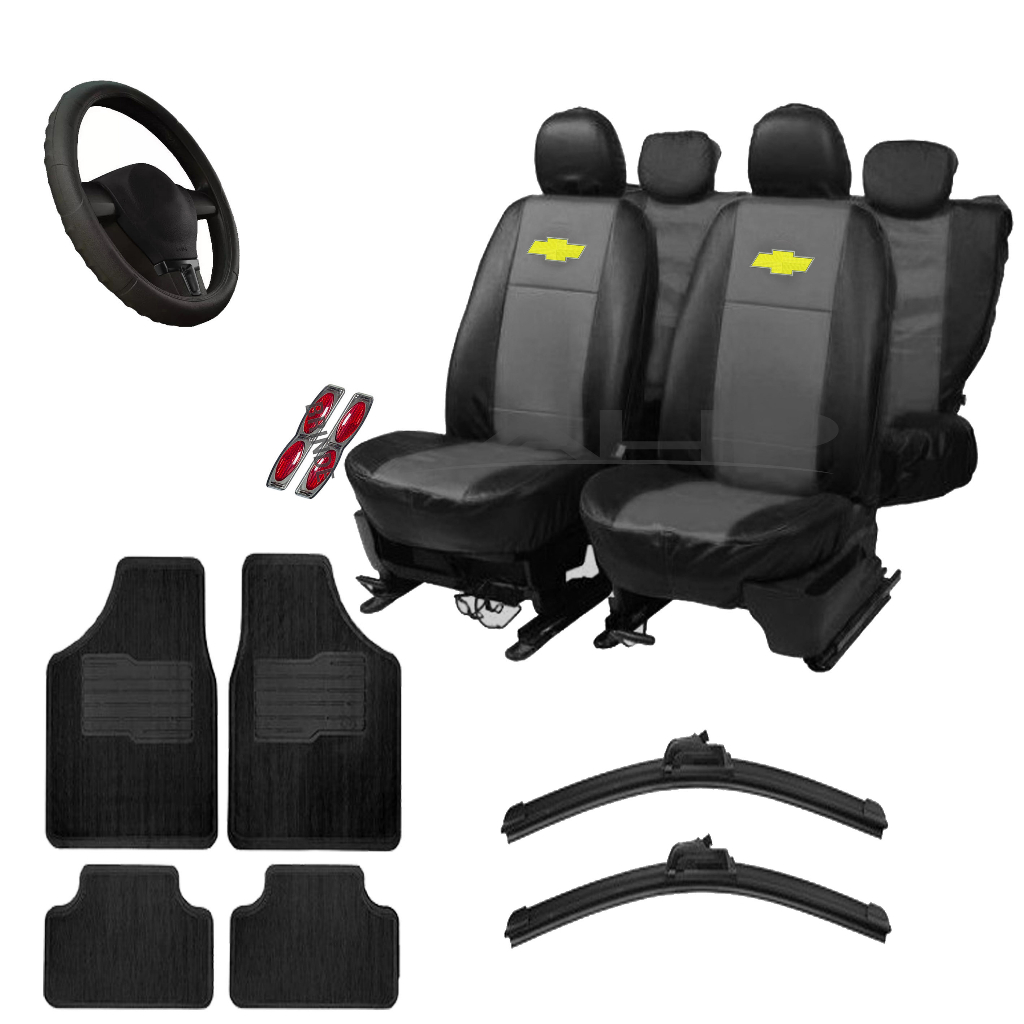 kit capa e assentos para banco de carro couro sintético chevrolet + tapete + volante + palhetas corsa celta prisma astra agile ônix montanha