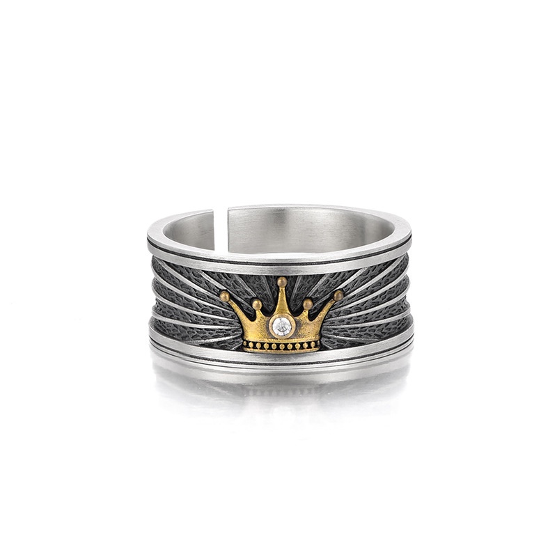 Anel De Prata Jóias Tailandesa Retro Coroa Design Masculina Trendy Open Ring Ajustável