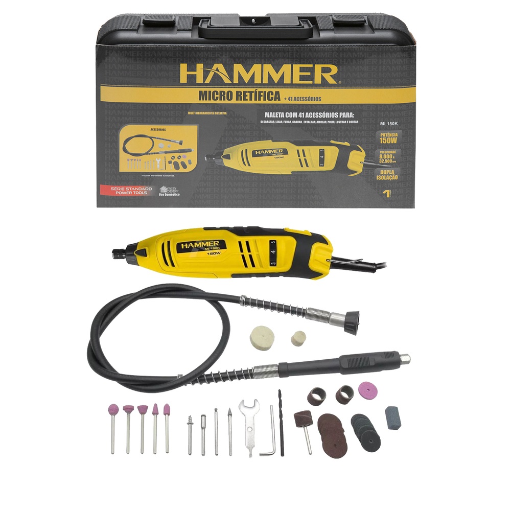 Kit micro retífica 150 watts 41 acessórios com maleta - GYMI150K - Hammer