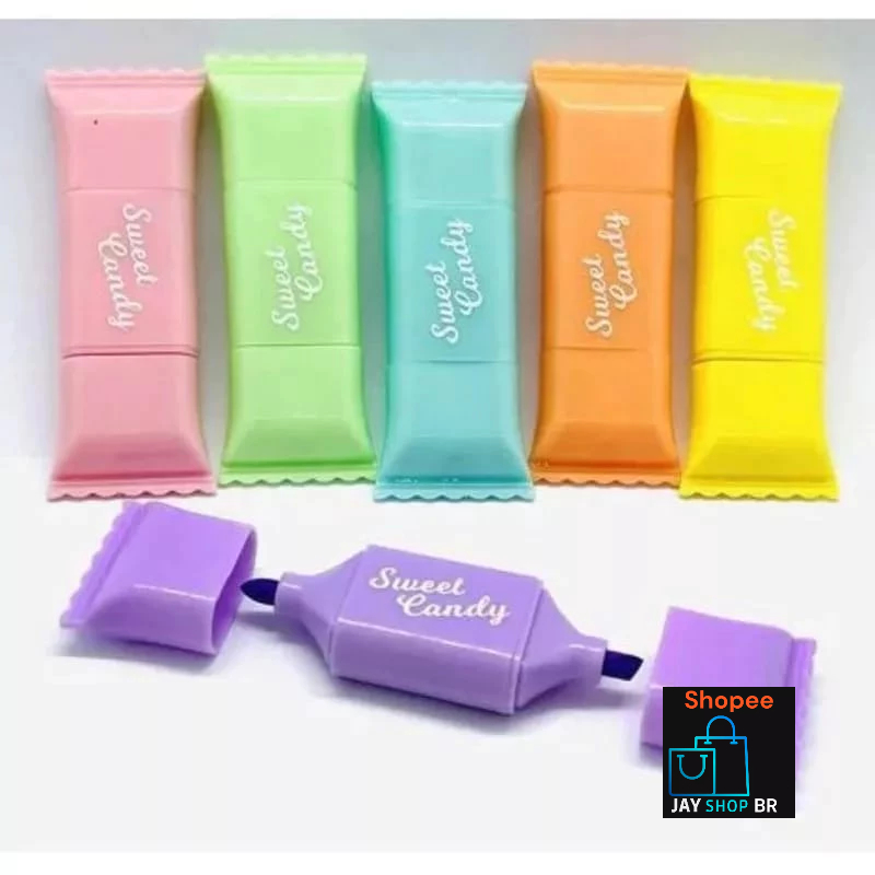 Dupla Ponta Kit 6 Cores com PACOTE MARCA TEXTO CHOCOLATE SWEET CANDY Papelaria/Escritório/Escola
