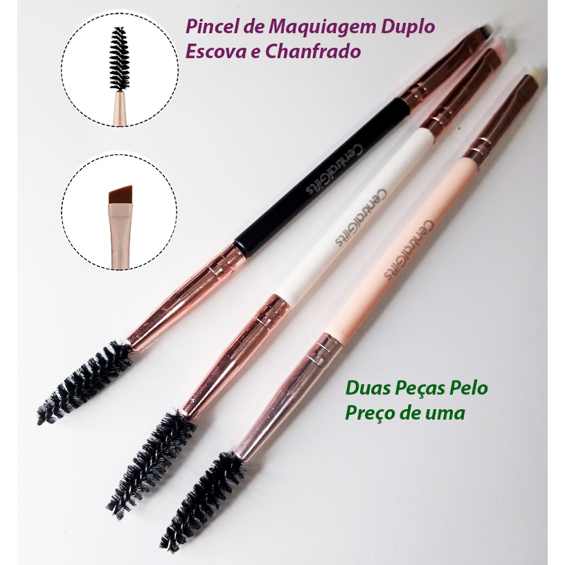 Kit 12 Pincel Para Sobrancelhas Duplo Escova e Chanfrado