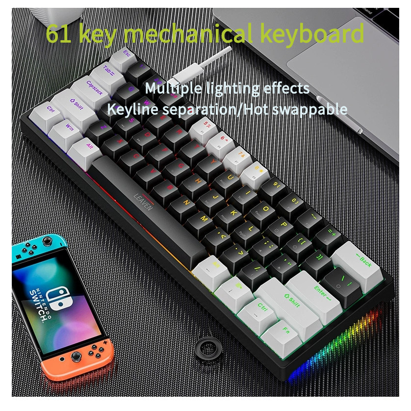 Feylan k620 mini teclado mecânico do jogo 61 teclas RGB hotswap Tipo-C teclado com fio do jogo PBT teclados 60% teclados ergonômicos