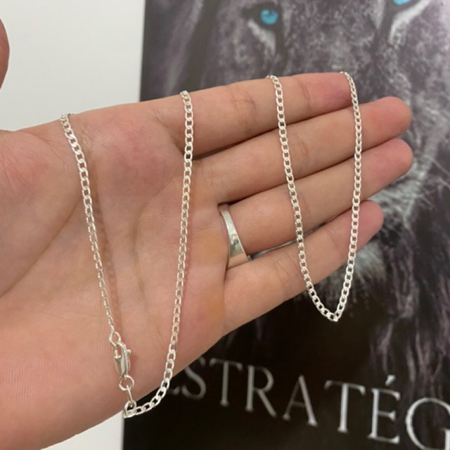 Corrente Colar Masculino Grumet 2,5mm Prata Cordão Banhado A Prata 925