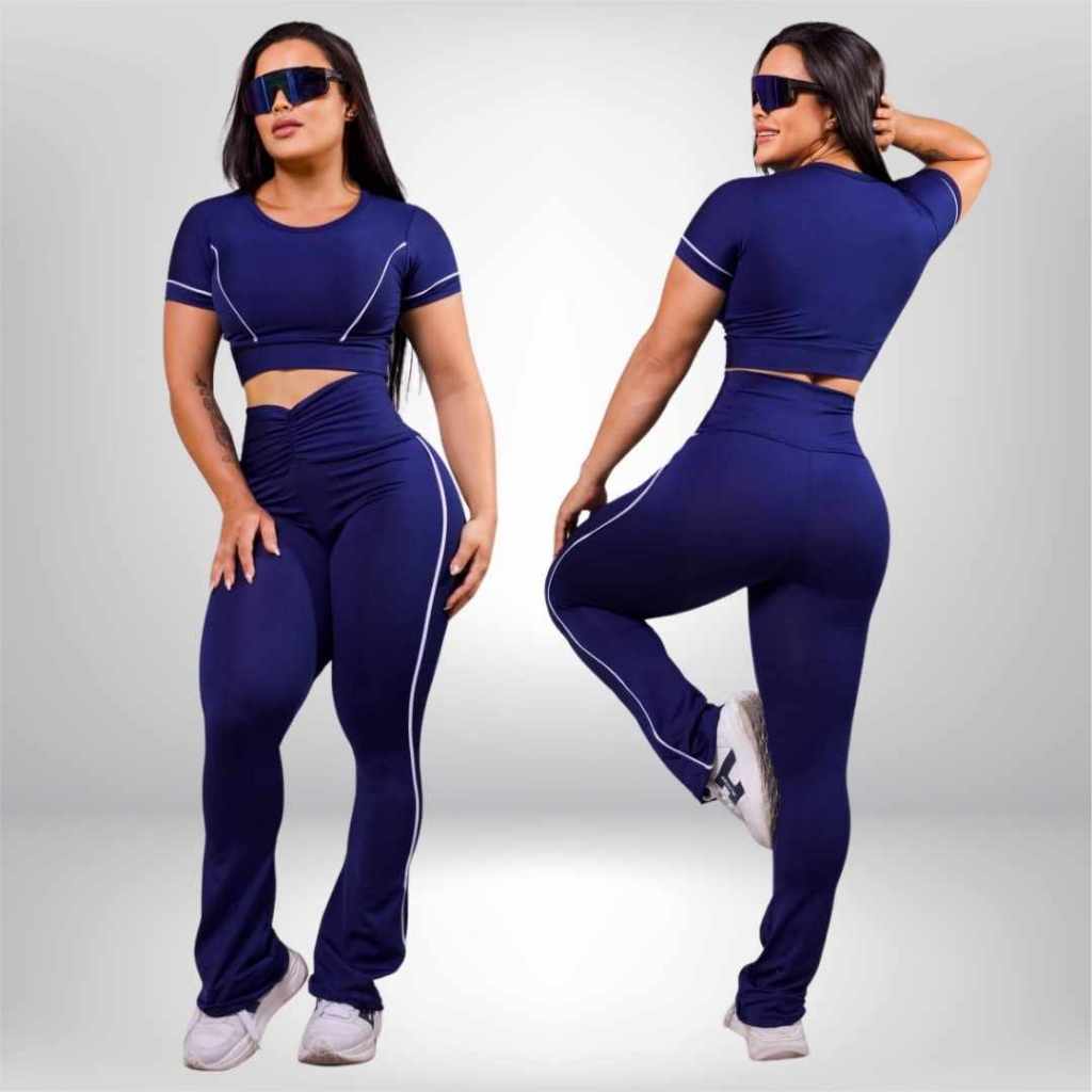 Kit 2 Conjunto Fitness Calça Legging e Top Leg Roupa de Academia