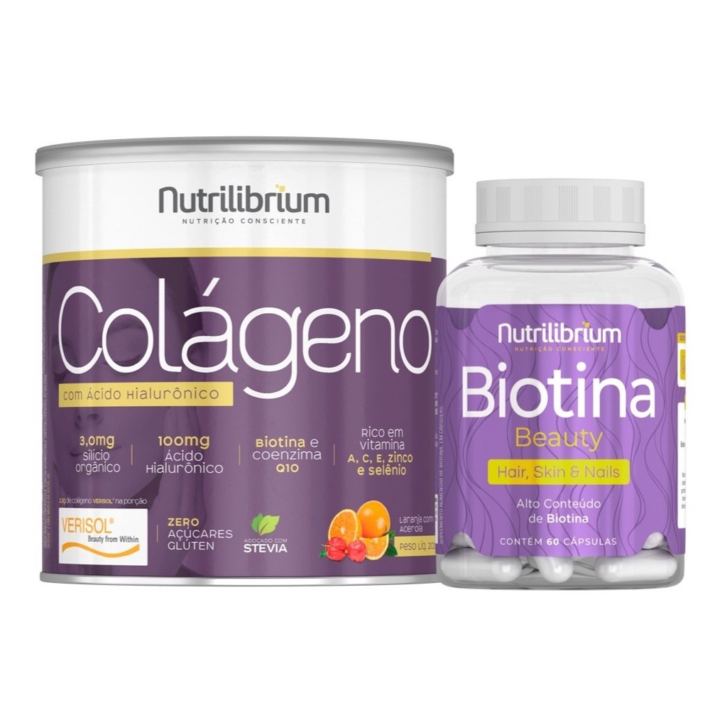 Kit Colágeno Verisol Com Ácido Hialurônico Premium + Biotina Nutrilibrium