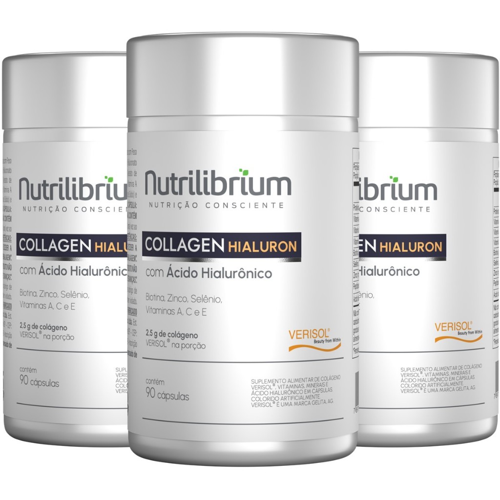 Kit 3x Colágeno Verisol com Ácido Hialurônico 270 Caps - 3 Meses Nutrilibrium