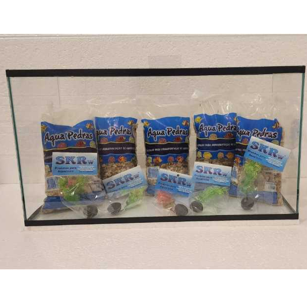 Aquário Grande completo 22 Litros 45x20x25 decorado com cascalho de rio e plantas artificial tampa com corte para filtro interno e externo