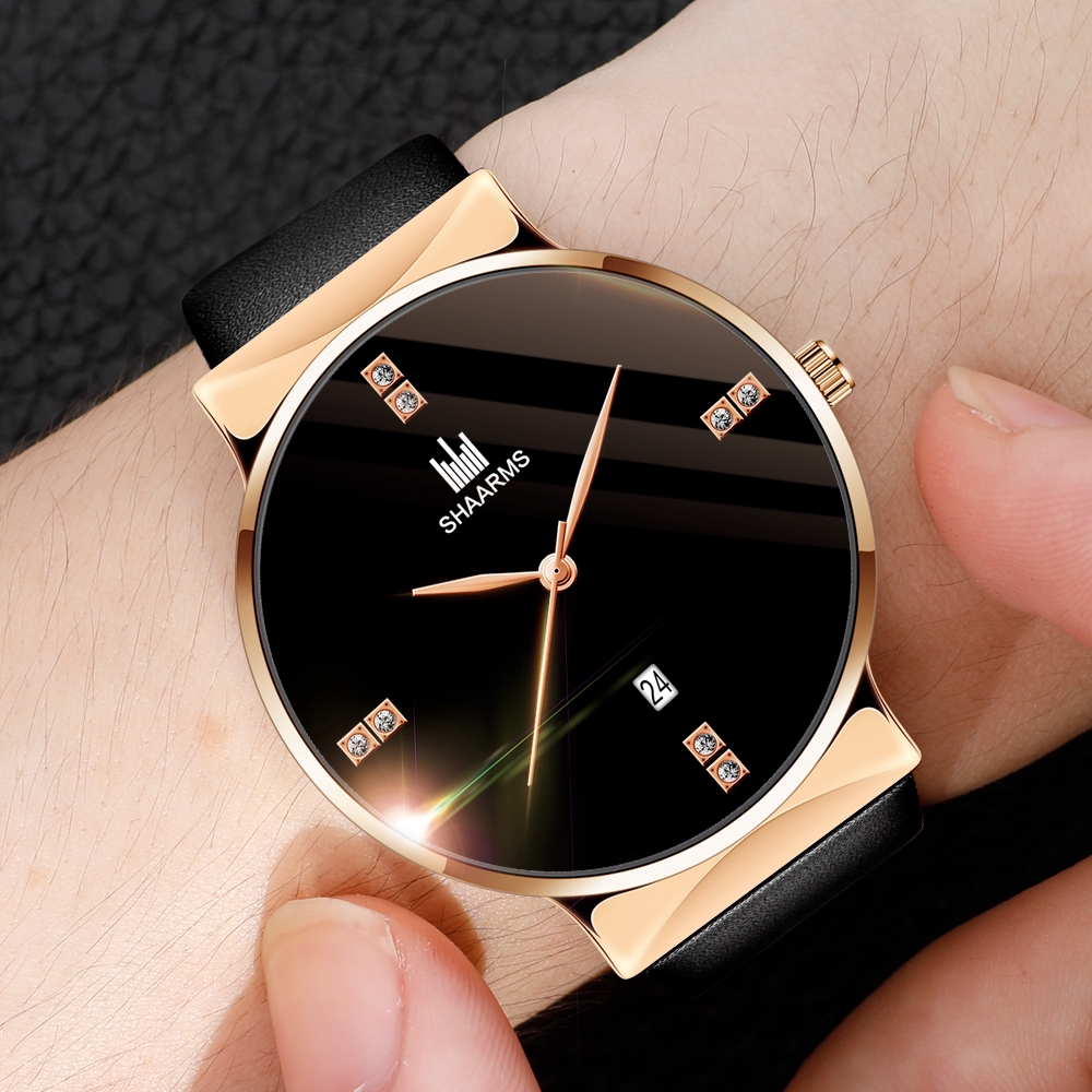 Shaarms Homens De Negócios Relógios Com Data Calendário Pulseira De Couro Casual Masculino Relógio De Pulso De Quartzo