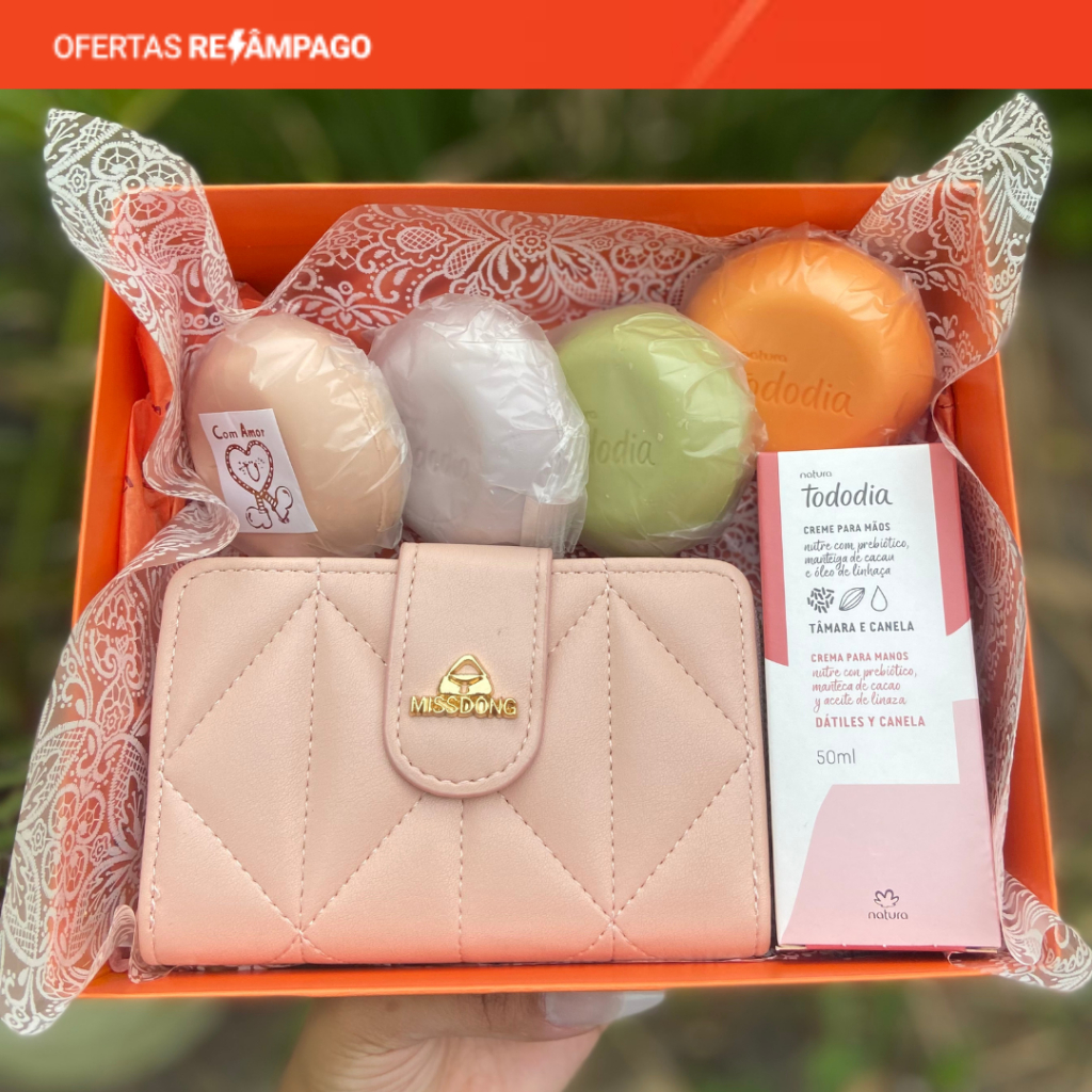 Kits com Carteira + 4 Sabonetes + Creme de Mão Natura | Presente para o Dia das Mães