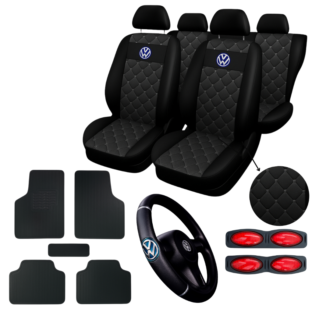 kit Capa Banco Automotivo Couro Gol G1 G2 G3 G4 G5 G6G7 Vw tapete de carro + capa de volante