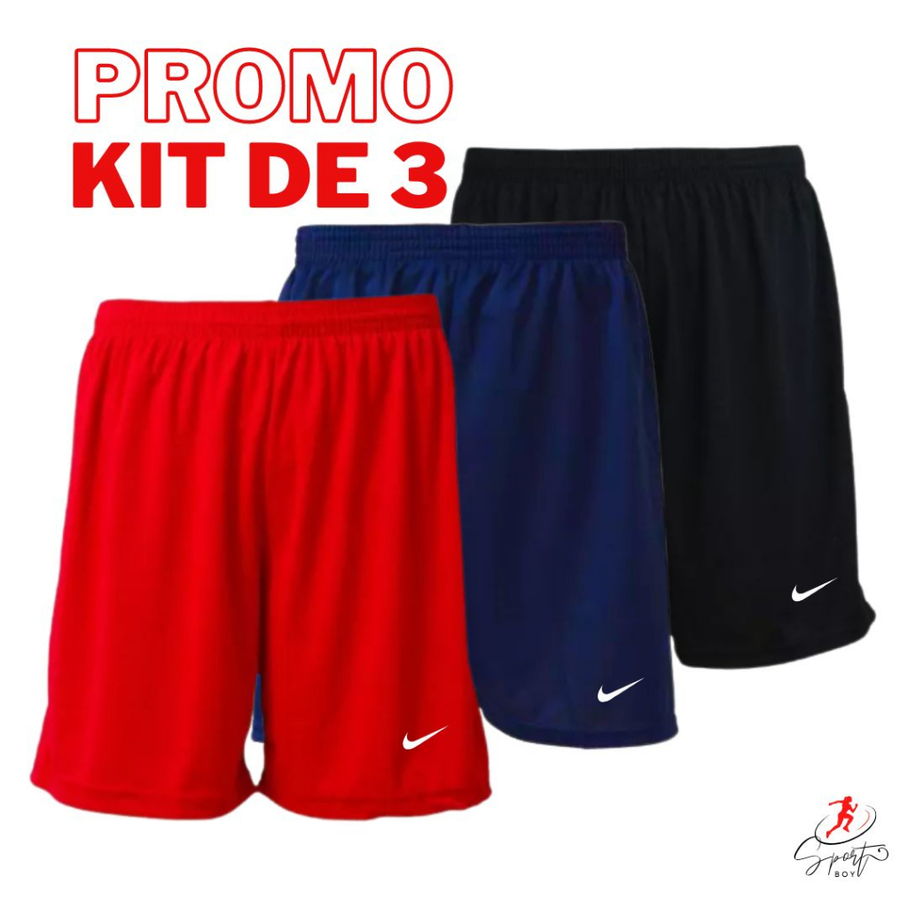 Kit com 3 Bermudas Calção de futebol em Poliéster Shorts Esportivo