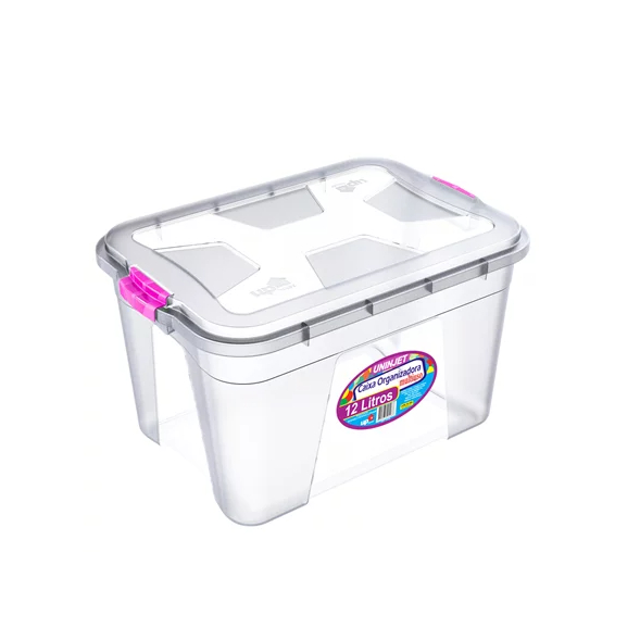 Caixa Organizadora com tampa e Travas Uninjet Transparente 12 Litros