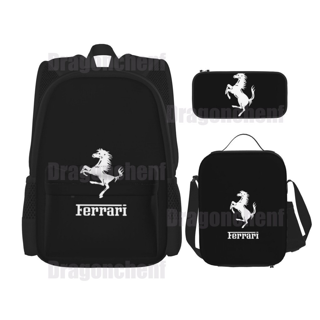 Mochila Escolar FERRARI Com Lancheira E Estojo Para Lápis Juvenil Conjunto Grande De 3 Peças Meninos Meninas Bolsa Viage