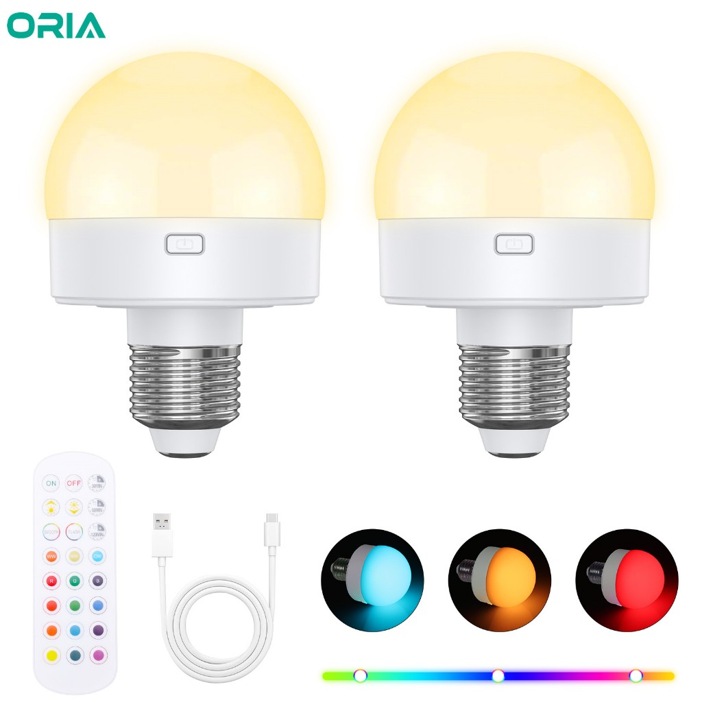 Lâmpadas Recarregáveis ORIA E26/E27 Removíveis Com Controle Remoto De 12 Cores RGB Para Quarto , Sala De Estar , Cozinha (2 Pacotes)