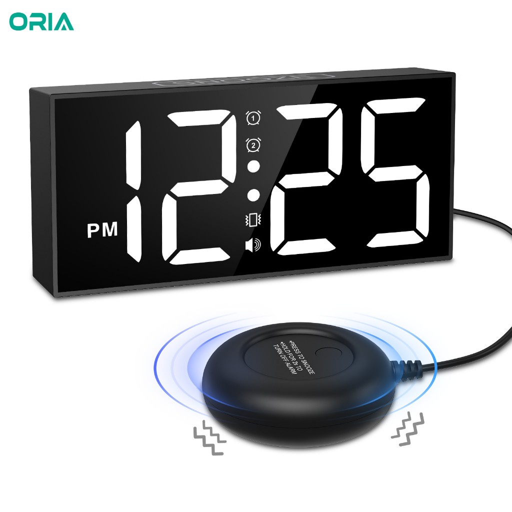 ORIA Vibração Despertador 7 Polegadas LED Grande Display Alto Com Vibrador Para Dormires Pesados E Comparelhados Auditiv