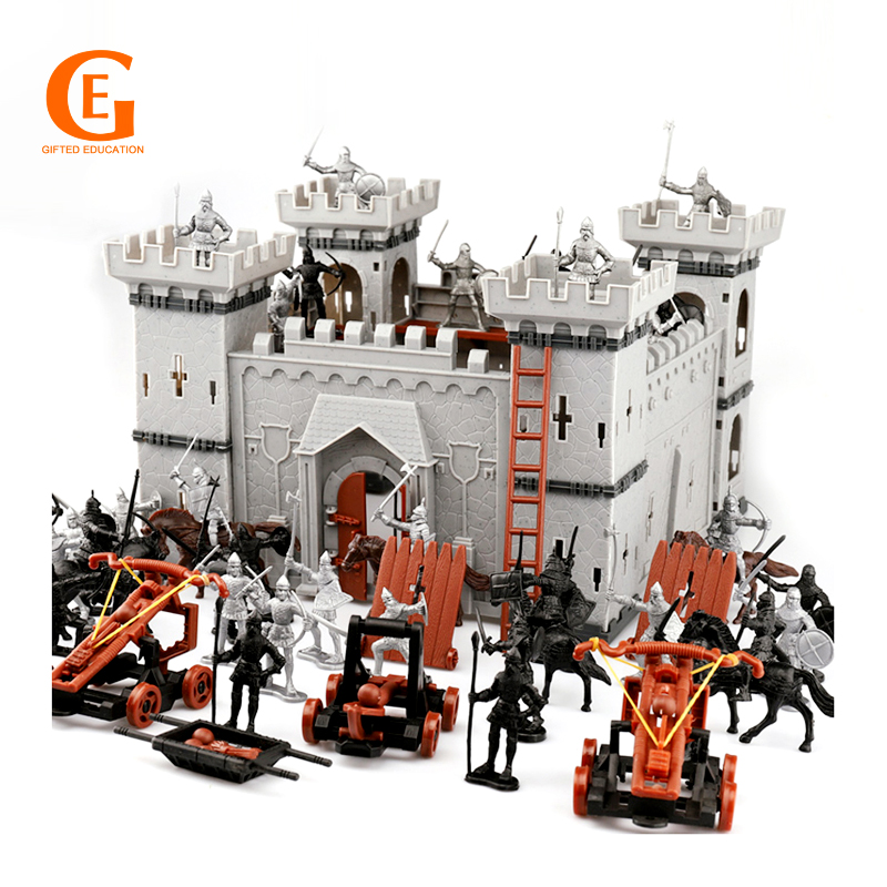 Crianças DIY Reino Unido Castelo Medieval Soldados Modelo Conjunto Figuras Cavaleiros Modelo Estática Brinquedos Educativos
