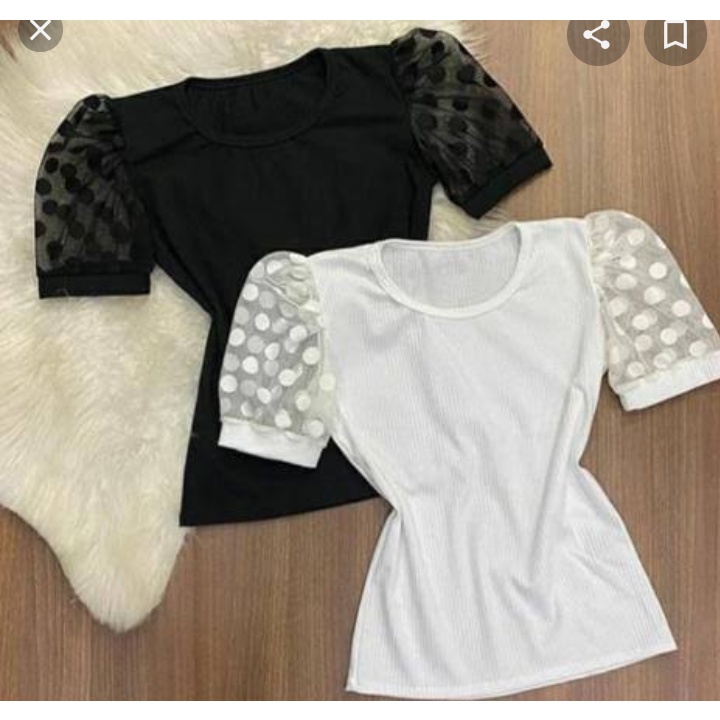 kit 2 Blusa Feminina Manga Bufante Poá transparente!!!