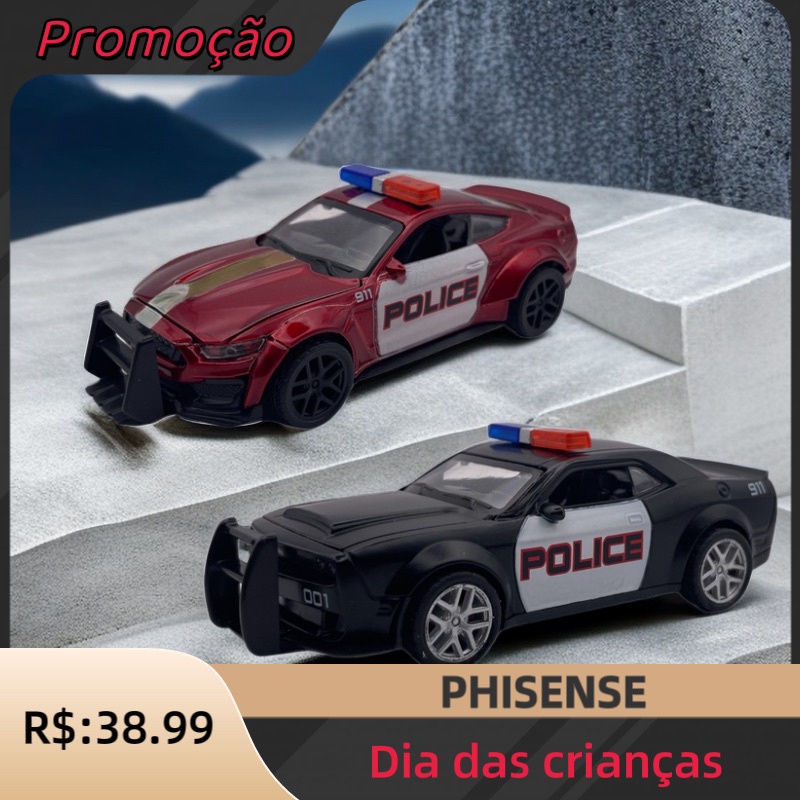 KIT 2 Carrinhos De Metal A Fricção Miniatura Viatura Policial carro de ferro Brinquedo CHE-21