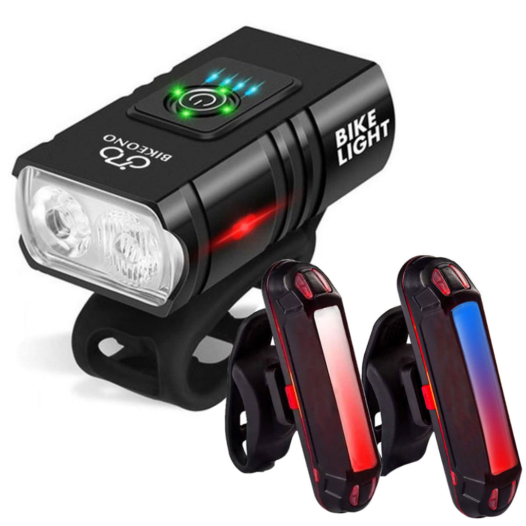 Kit Lanterna E Farol Bicicleta Recarregável, Conjunto de Luzes Led Para Bike Resistente a Água vários modos de luz (cabo USB incluso) - Bezzter