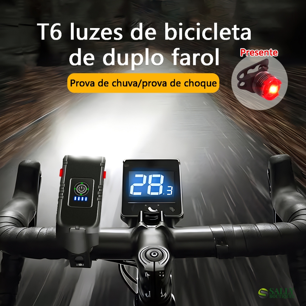 Farol Lanterna Luz Sinalizador De Bike Bicicleta 2 Led Cree T6 Recarregavel Usb Medidor Buzina com power bank