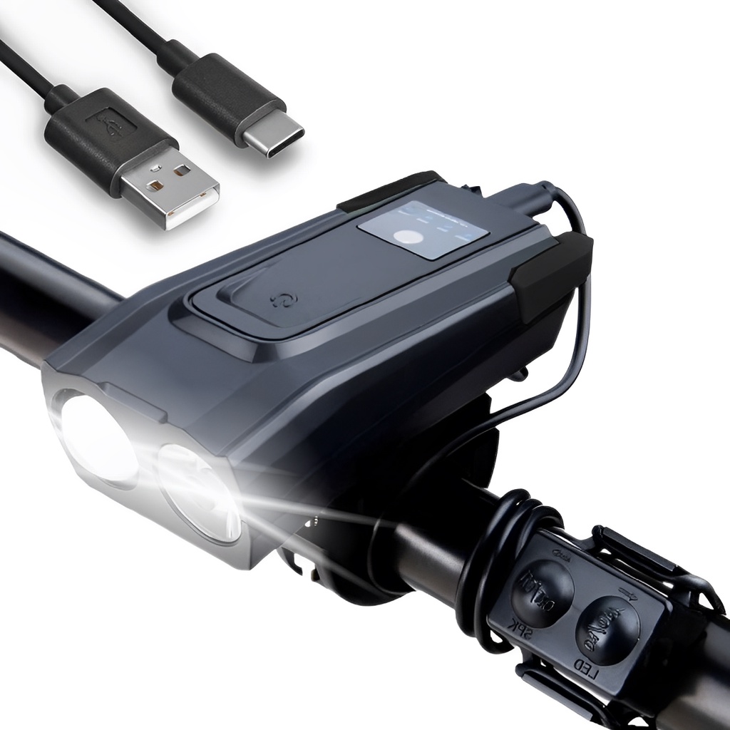 Lanterna Farol Led Bike C/ Buzina Bicicleta Recarregável Usb R-52