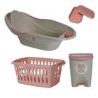 Kit Banho Baby Bebê Infantil Menina Banheira Saboneteira Cesto Lixeiras Balde - Usual Baby