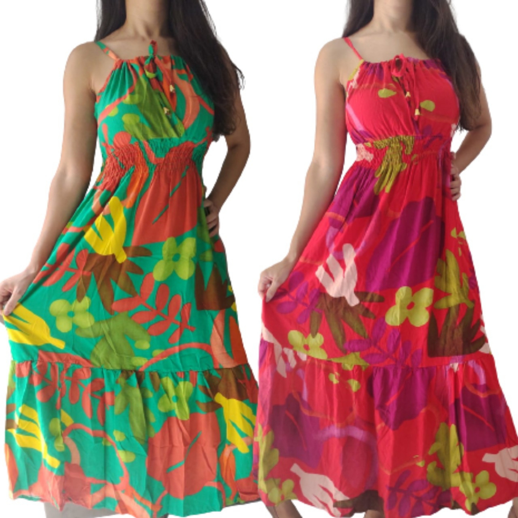 Vestido Feminino Longo Lastex Estampado Fresquinho Verão Adulto Soltinho Floral Florido Alcinha Rodado Viscose Viscolinh